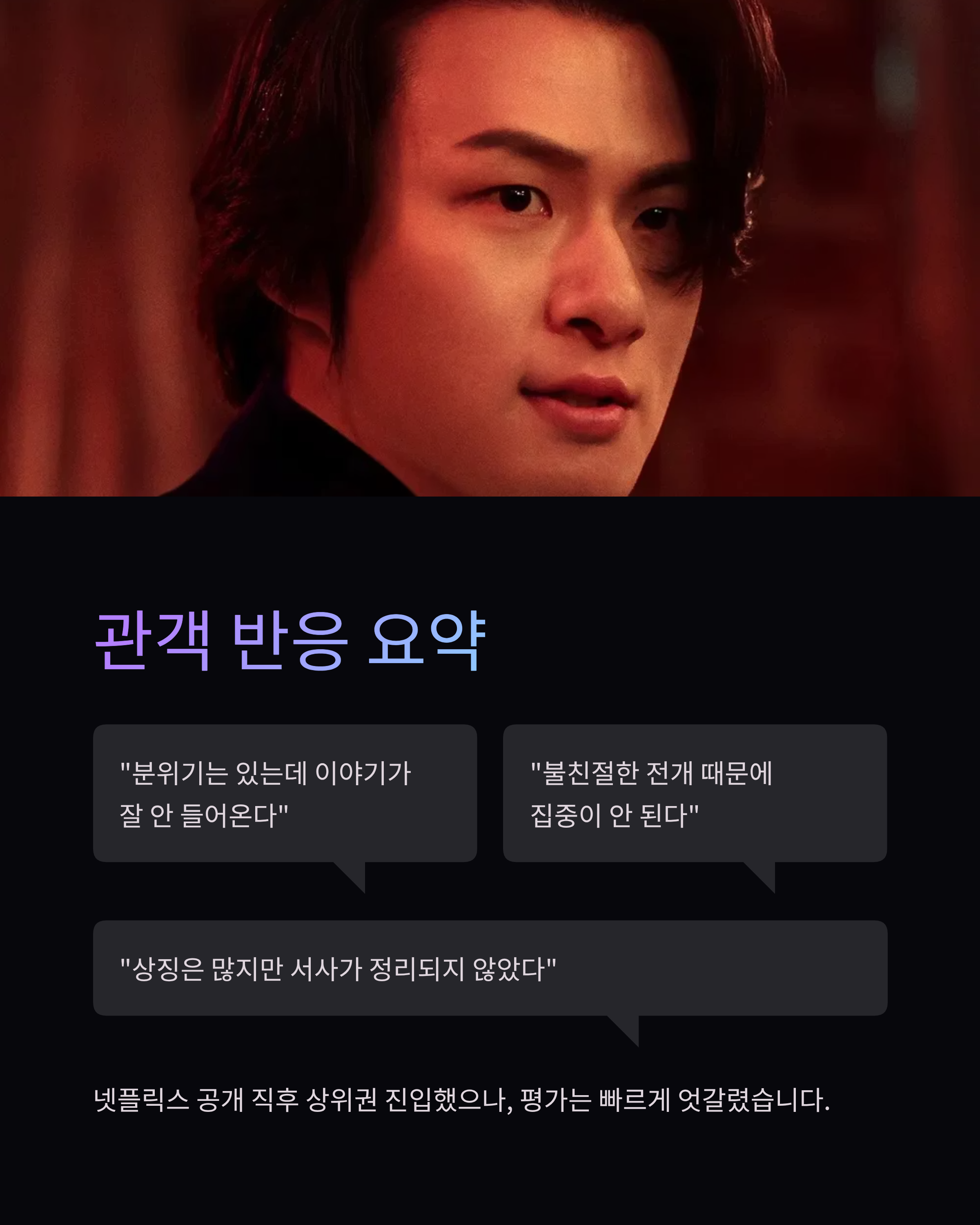 🔥 호기심 유입 대비 만족도는 높지 않았던 작품으로 정리된다.