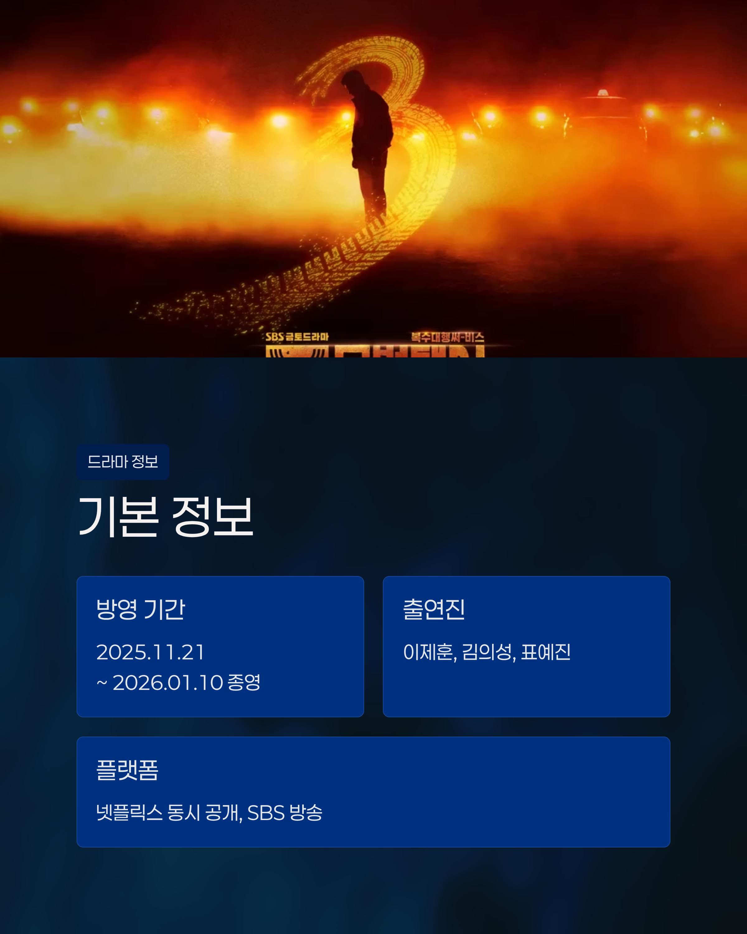 • 방영일: 2025.11.21 ~ 2026.01.10 (종영)