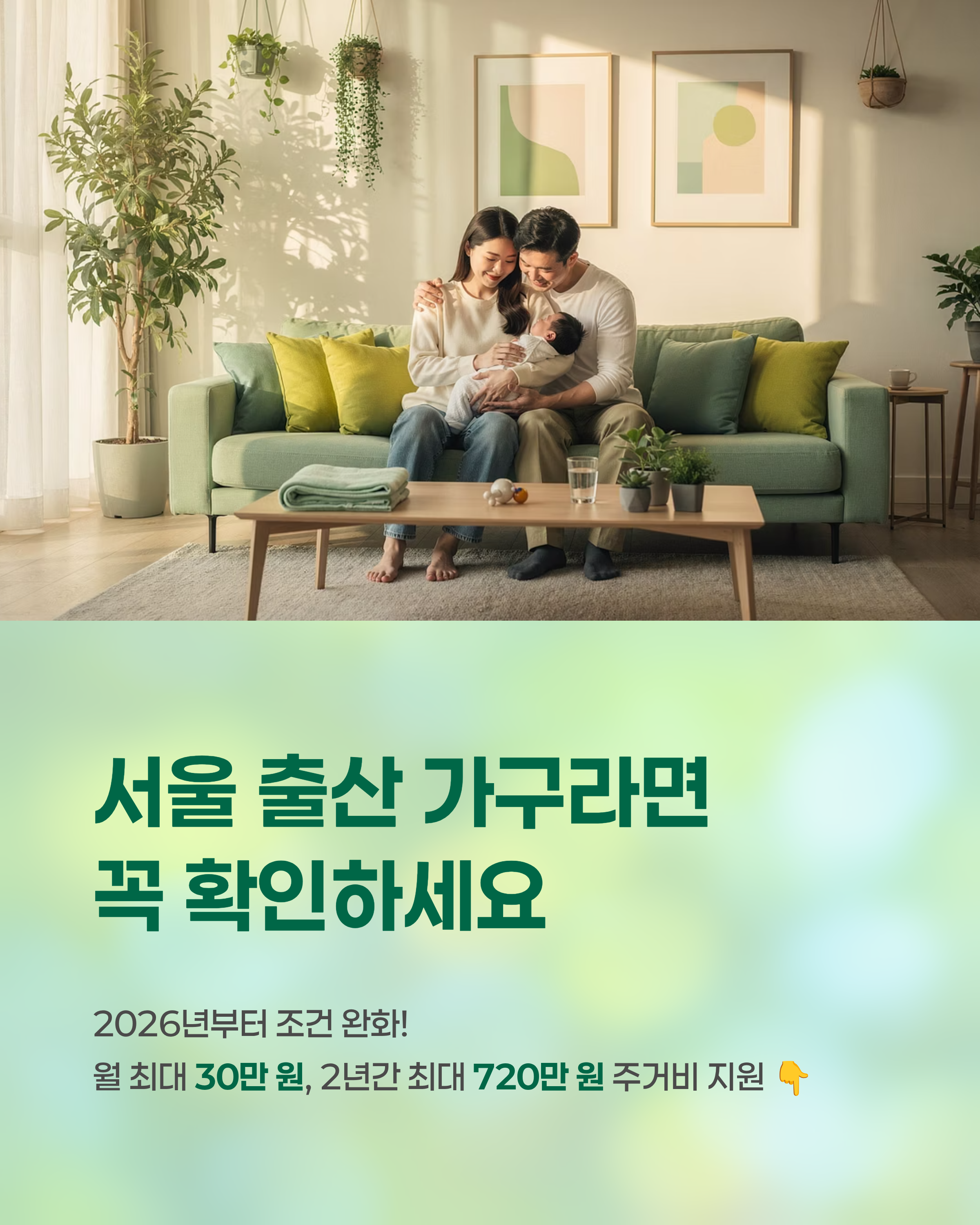 아이 낳고도 서울에서 계속 살고 싶은데, 월세·대출이자 부담이 너무 크죠. 서울시 자녀 출산 무주택가구 주거비 지원이 2026년부터 조건이 완화돼 더 많은 가구가 신청할 수 있게 됐어요.
